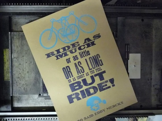 Dynamoworks, a print studio in Edinburgh, produces wonderful letterpress and screenprinted posters. This one quotes legendary Belgian cyclist Eddy Merckx.