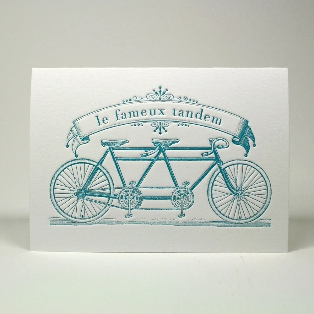 If you fancy some vintage bicycle you might like 'the famous tandem" by Letterpress Delicacies;)