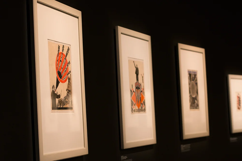 The graphics works, mainly photomontages, by Gustavs Klucis (1895–1938) attracted my attention the most. I knew very little about him except that he was a student and then a teacher at VKhuTEMAS, about his ideological beliefs and his work for Kino-front magazine (1926).
