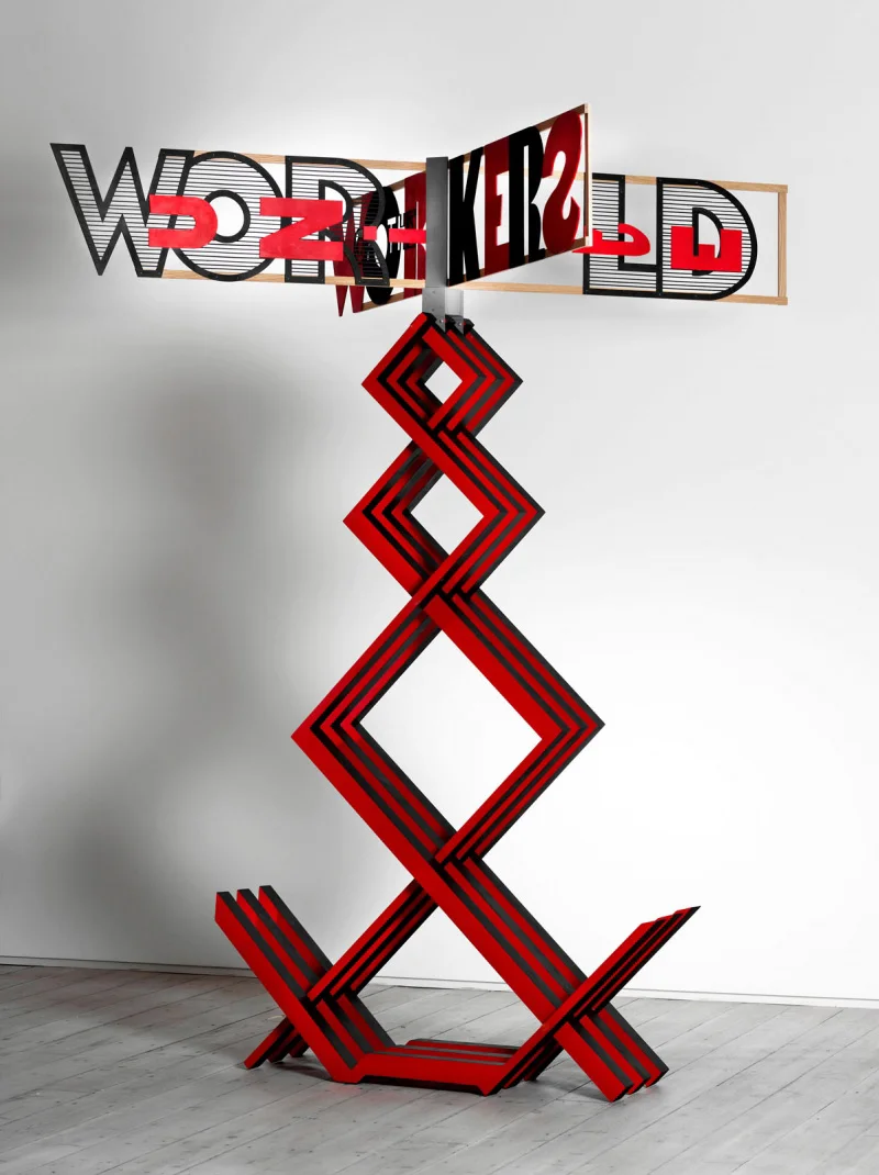 'Stand with Rotating Slogan’, Henri Milner, wood, acrylic, 2013. Courtesy GRAD: Gallery for Russian Arts and Design