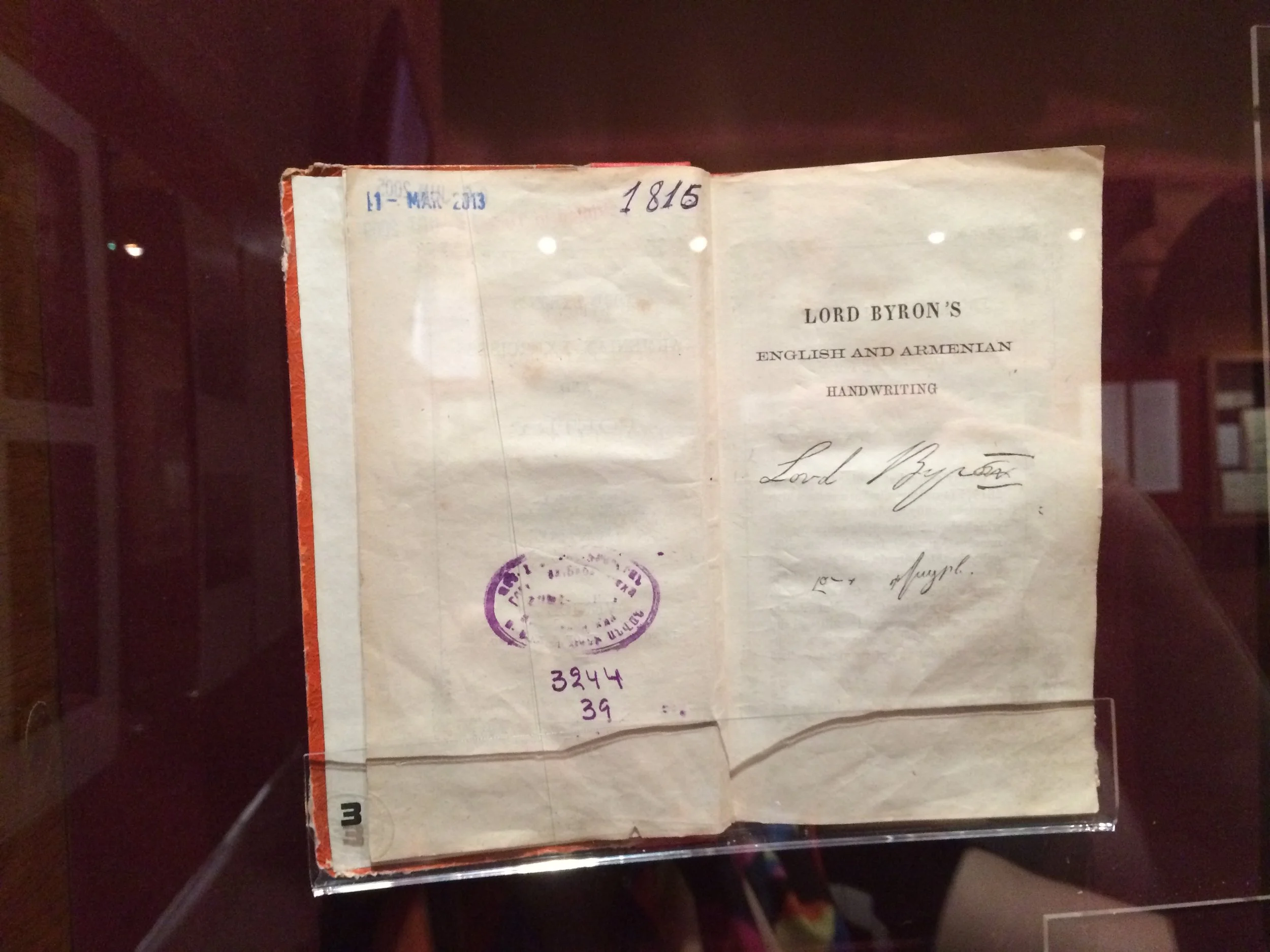 Book signed by Lord Byron, who was a great admirer of Armenian culture was also on display at the museum. He learned the Armenian language in Venice from the Mekhitarist Order, wrote substantially about the Armenian language and history, contributing to its improvement and translated ancient Armenian texts into English.