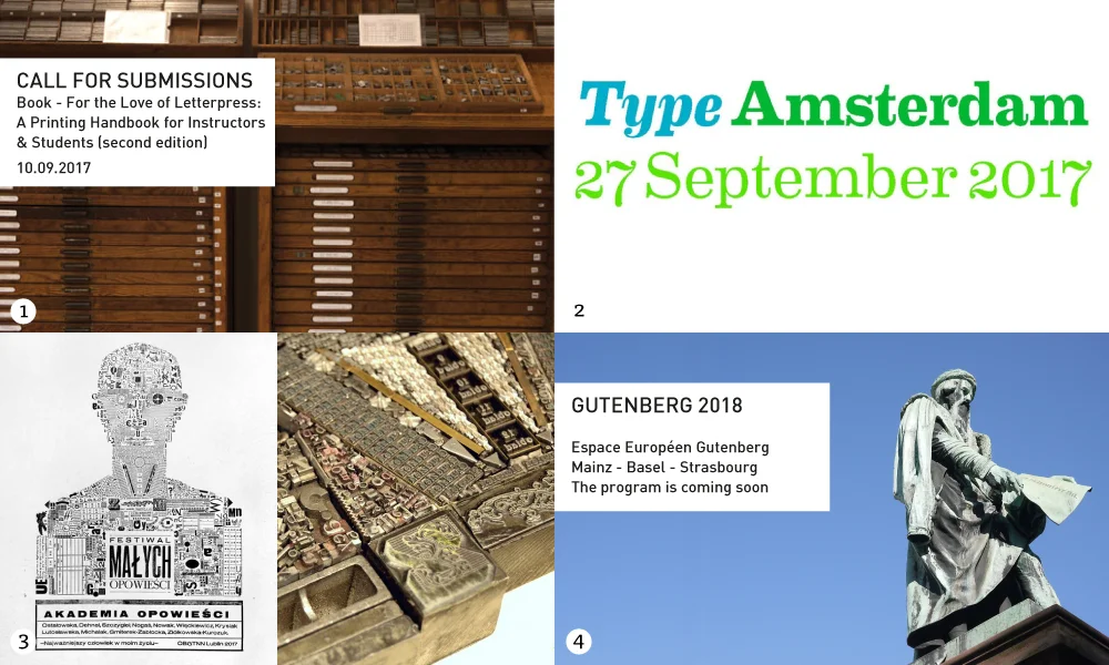 1. The New Impressions 2018 call for entries is now open. This is an international, juried exhibition to showcase exploration and creativity with letterpress printing techniques. The deadline for entries is February 10.